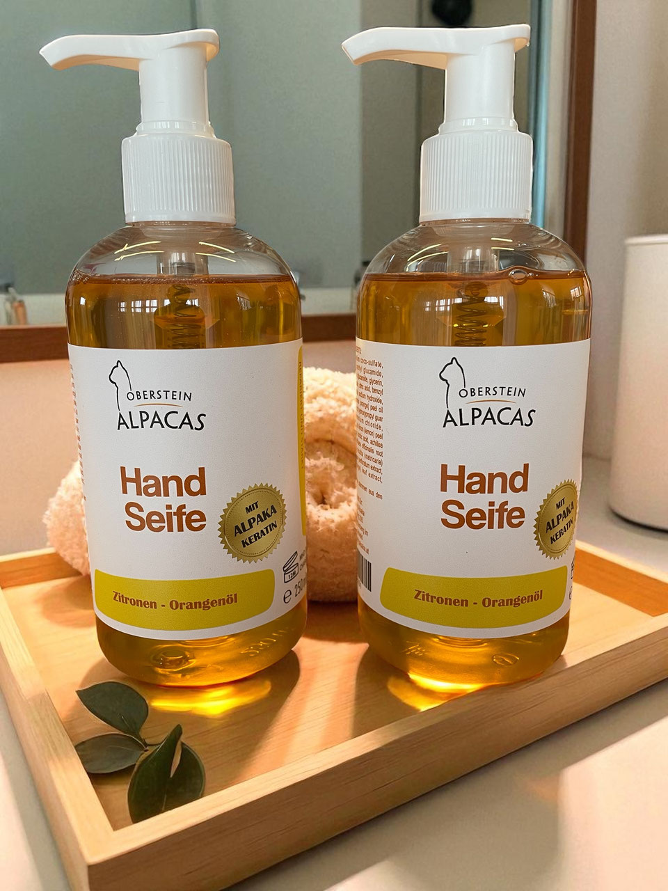 Erlebe die perfekte Kombination aus sanfter Reinigung und belebender Frische mit unserer Alpaka Flüssigseife Orange & Zitrone. Der fruchtige, erfrischende Duft hebt die Stimmung, während wertvolle natürliche Inhaltsstoffe deine Haut intensiv pflegen.